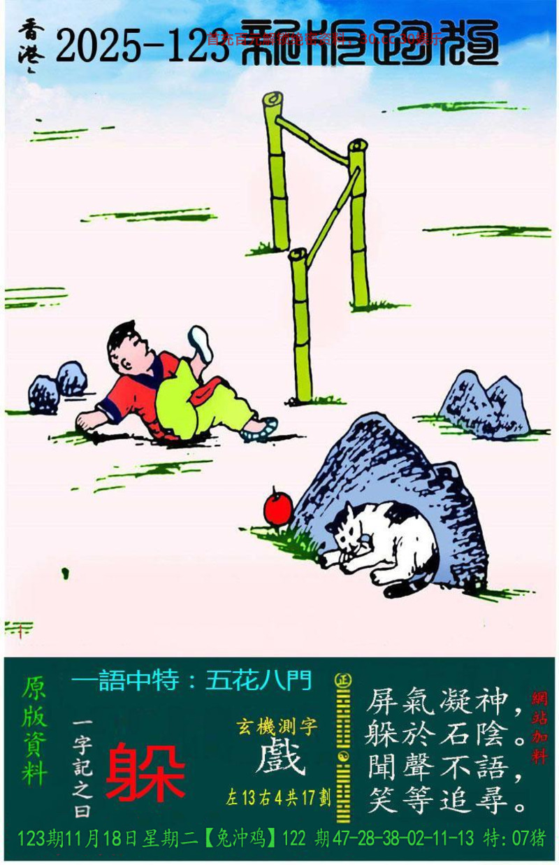 123期一字記之曰:【躲】屏氣凝神,躲於石陰,聞聲不語,笑等追尋《戲》