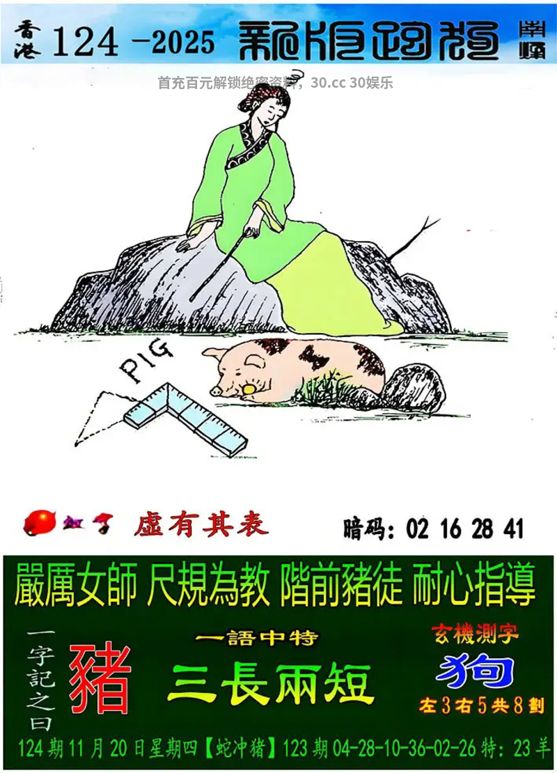 124期一字記之曰:【豬】嚴厲女師,尺規為教,階前豬徒,耐心指導《狗》
